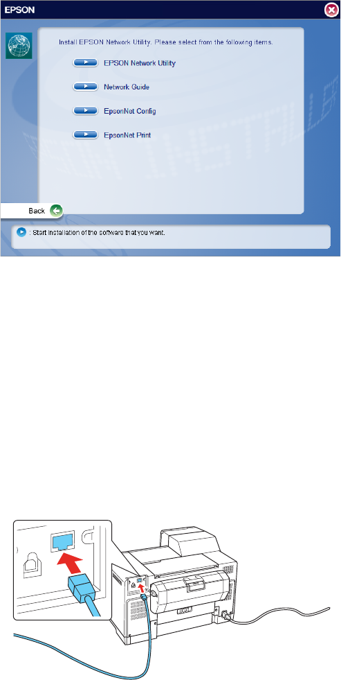 2. Connect one end of the cable to the printer’s Ethernet port. Then connect